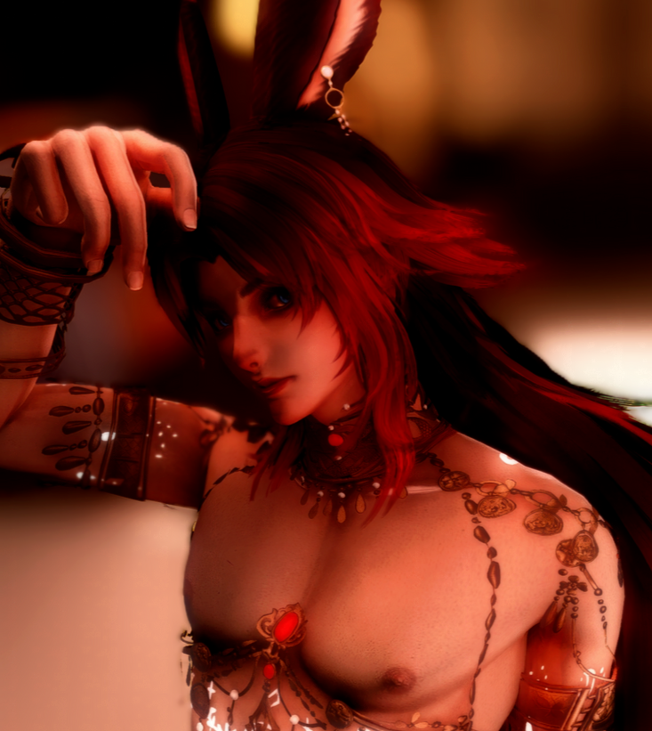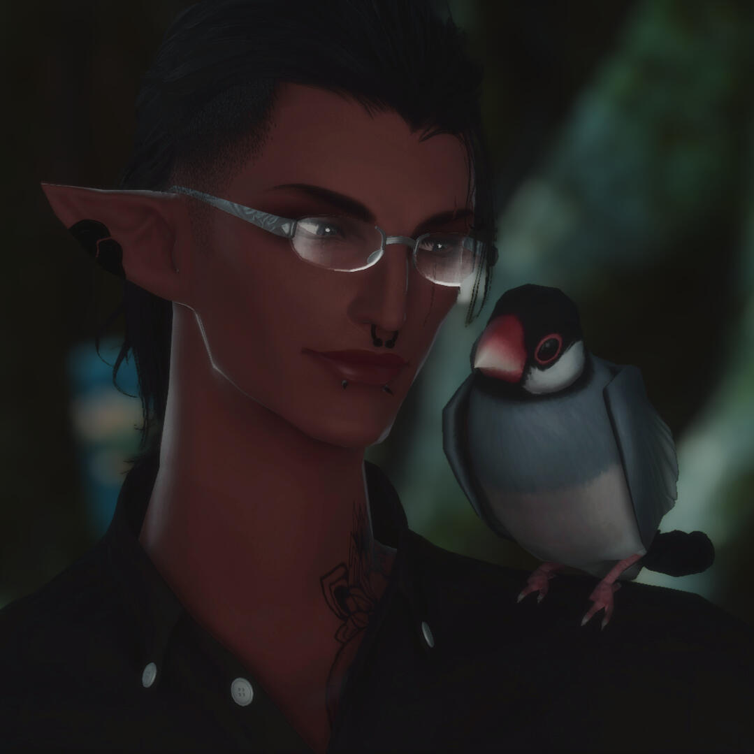 FAVORITE THINGS Learning about different cultures, trying new things, making people blush and feel good about themselves DISLIKED THINGS People who think they are above others, senseless violence COMPANY/AFFILIATION IndependentThis middle age Rava ran off to the city the first thing he could when he came of age. Of course he would secretly make pilgrimages back to his native lands to help rear and raise Jacks that were given to him. All that ended when the Garlean Empire set fires to his village and he was force to never come back. Instead he went to wandering Etheirys to learn about all he could and of course flirt.One thing he discovered he enjoyed attention from all walks of life and they enjoyed his soft feathery ears. He sometimes puts to much effort into these sorts of things and comes off a bit awkward but that's part of his charm. (He is slightly himbo coded)*